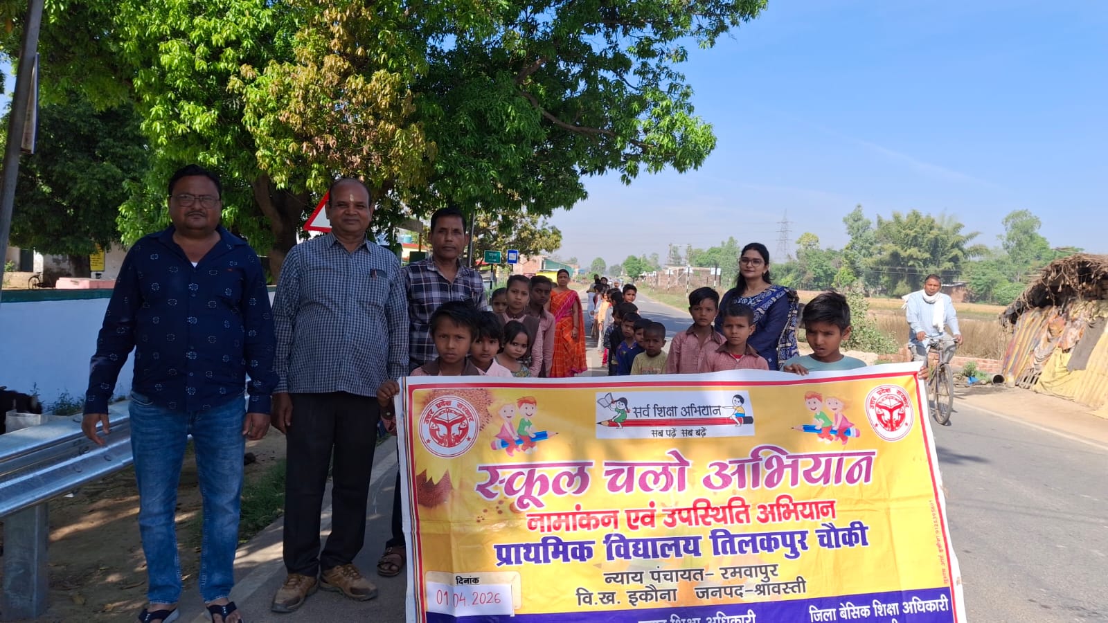 स्कूल चलो अभियान के तहत चैनपुर व तिलकपुर चौकी में निकली रैली